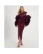 Purple Velvet Drape Midi Dress