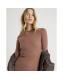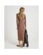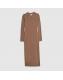 Beige Long Sleeve Ribbed Midi Dress