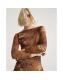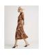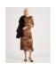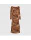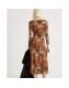 Brown Mesh Long Sleeve Spot Print Midi Dress