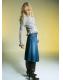Confeccionado en tejido de punto medio, este diseño recto presenta un cuello redondo, manga larga con volante en los puños. y volante en el bajo. Se cierra con botones en la parte delantera