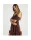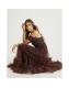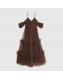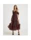 Brown Tulle Ruffle Midi Dress
