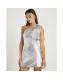 Silver Faux Leather One Shoulder Mini Dress