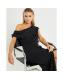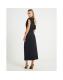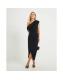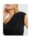 Petite Black Asymmetric Drape Wrap Midi Dress