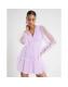 Purple Sheer Long Sleeve Tulle Mini Dress