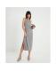 Grey Linen Look Ruched Side Cami Midi Dress