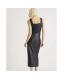 Black Embellished Faux Leather Midi Skirt