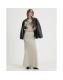 Cream Hammered Faux Leather Midi Skirt