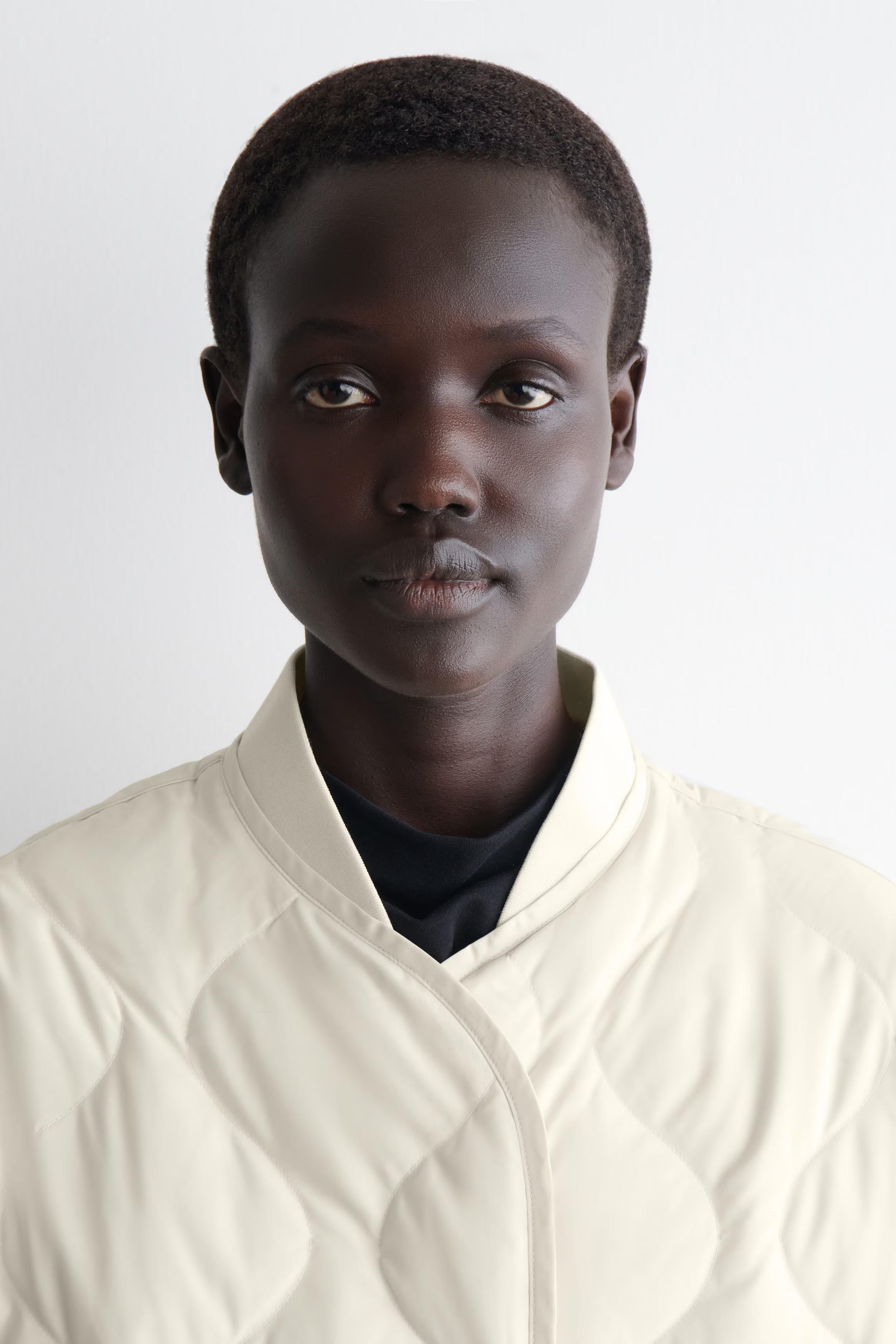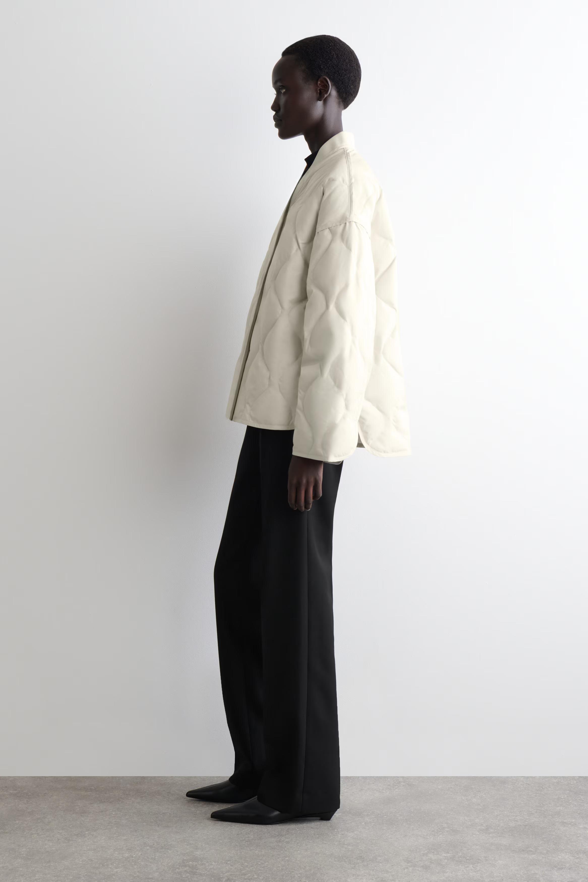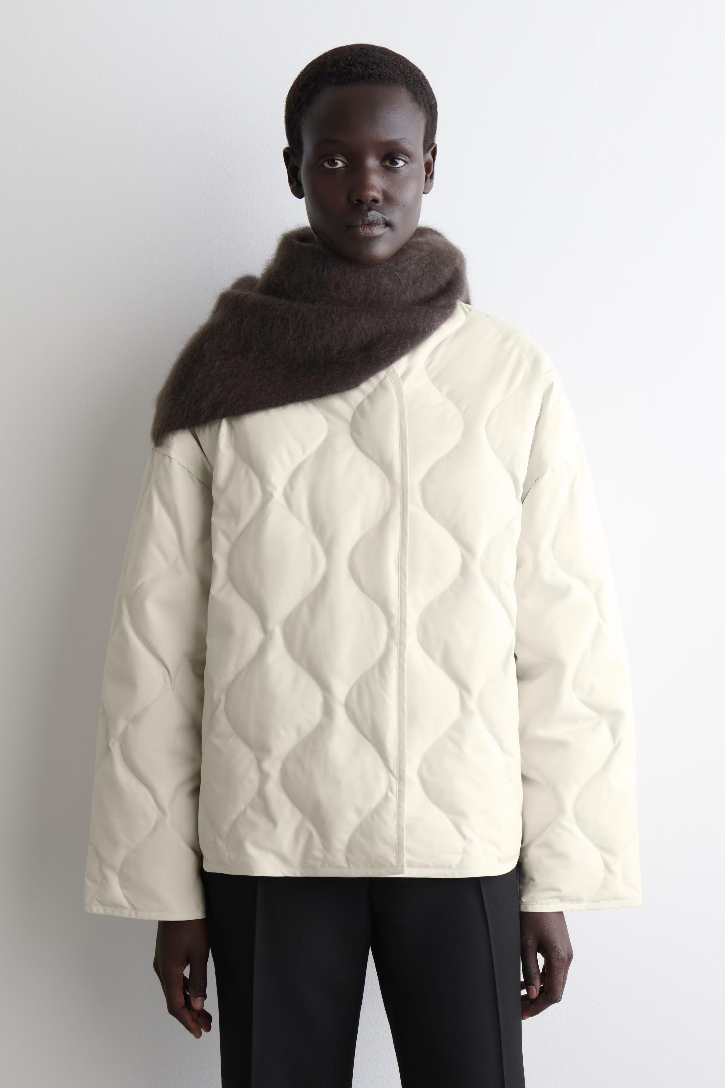 Designed for the cooler months, this modern jacket is filled with an RDS down and feather padding that's diamond-quilted for even heat distribution. It's cut in an oversized shape and has a ribbed collar, a number of pockets and a stepped hem at the back. The rich espresso hue will style effortlessly with the rest of your wardrobe.\u0026nbsp;\u0026nbsp;Oversized fitSnap-stud closureRecycled polyester is polyester made from PET bottles or end-of-life textile waste. The PET bottles or textile waste is mechanically recycled and processed into new yarn\u0026nbsp;Shell \u0026amp; lining: 100% Recycled polyester. Padding: 80% RDS Down, 20% RDS Feather. Excluding trims / Machine wash\u0026nbsp;Back length of size S is 68.5cm / Model wears a size S