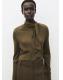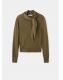 Tejido mezcla de lana. Tejido de punto fino. Diseño recto. Cuello alto. Cierre de nudo en el cuello. Manga larga. Sin cierre