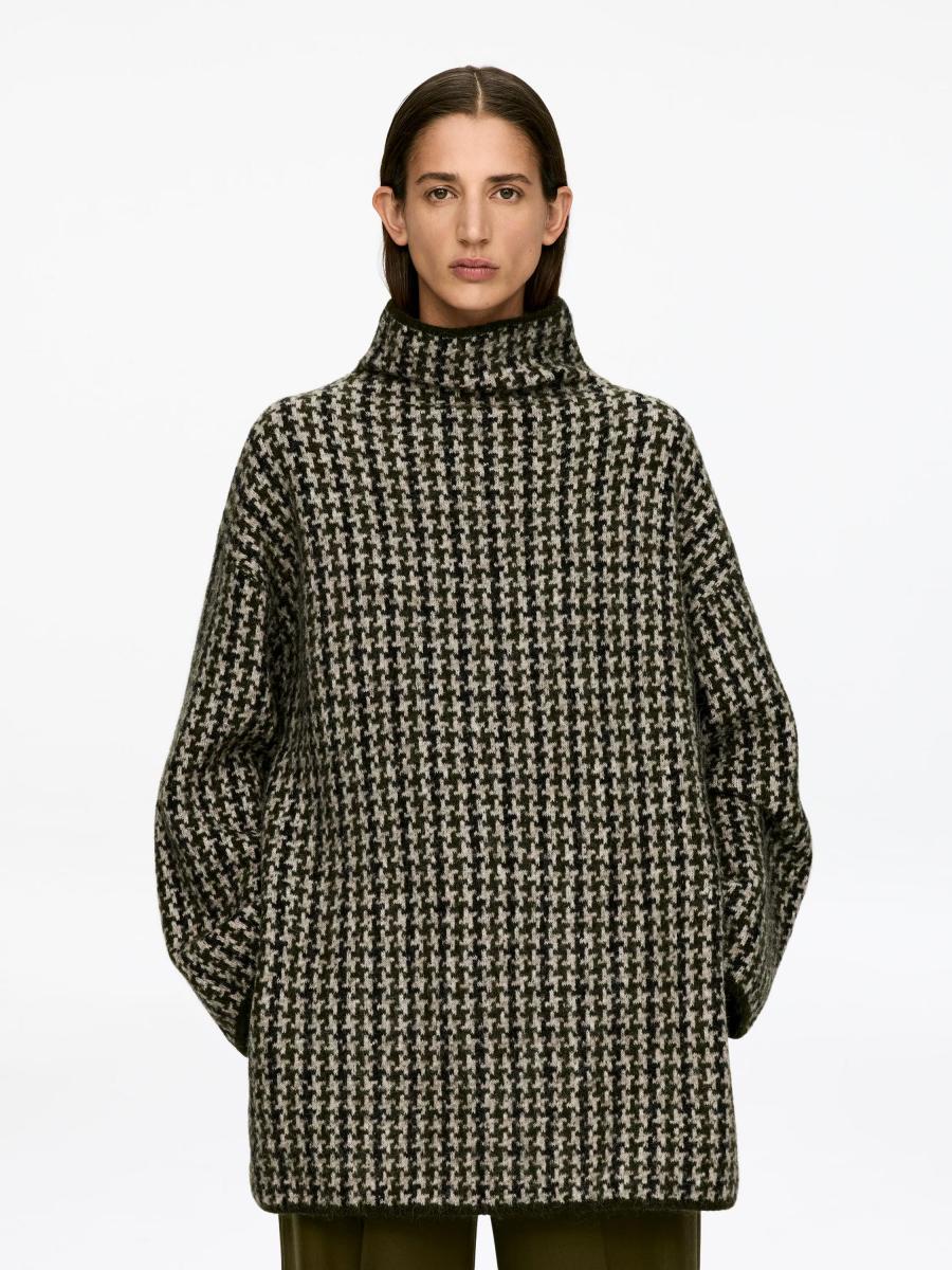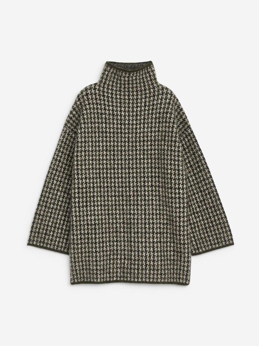 Jacquard-knit jumper in an alpaca and wool blend. A long-sleeved style with mock neck and a relaxed fit. The jumper contains 31% RWS wool (TE-00047206). Products certified to the Responsible Wool Standard (RWS) contain wool fiber from farms independently certified to animal welfare and land management requirements.ARKET/Women's clothes/Women's knitwear/Women's roll-neck jumper