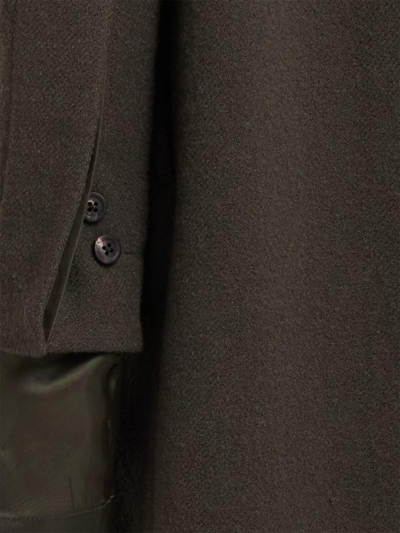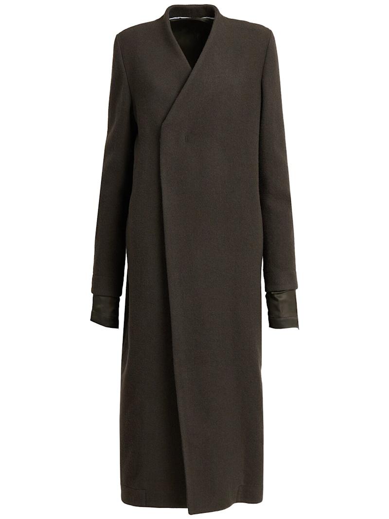 Museum collarless boiled wool long coat - 棕色 - 女士 - Rick Owens - Concealed front button closure.
