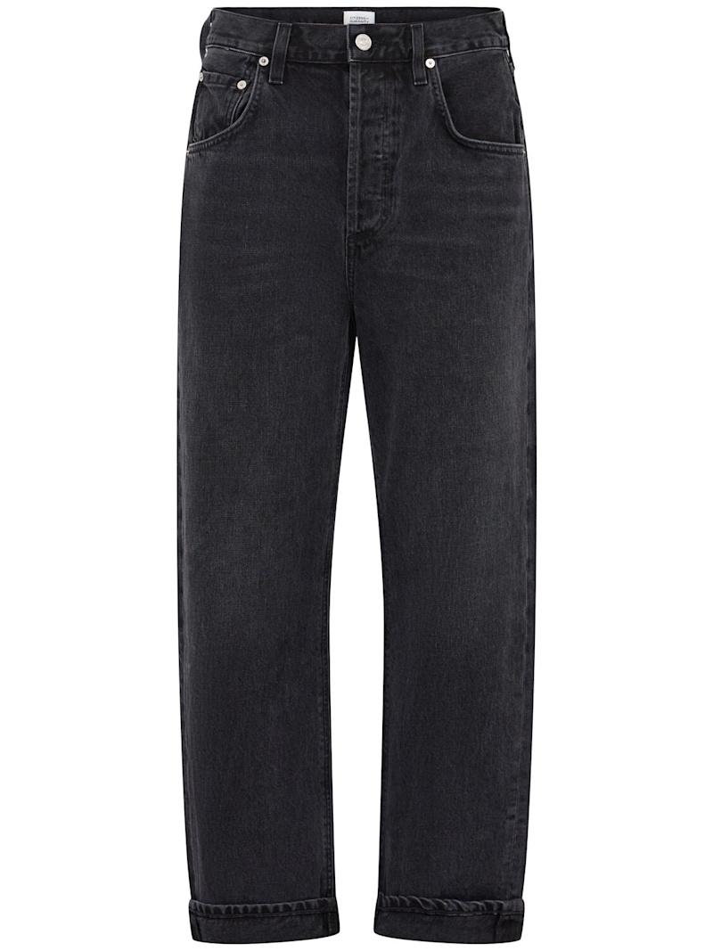 Dahlia中腰直筒牛仔裤 - 黑色 - 女士 - 正面隐藏式纽扣开合.