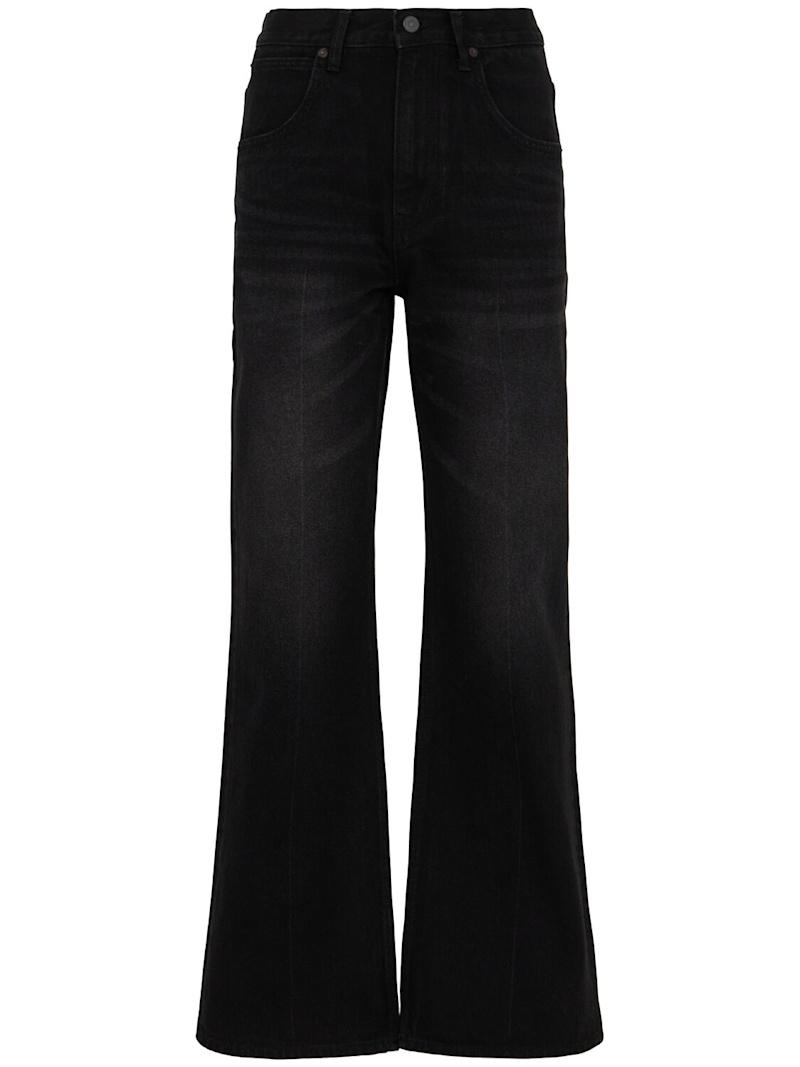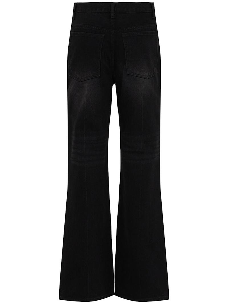 喇叭腿牛仔裤 - 水洗黑色 - 女士 - Tonywack - 正面纽扣和隐藏式拉链开合.