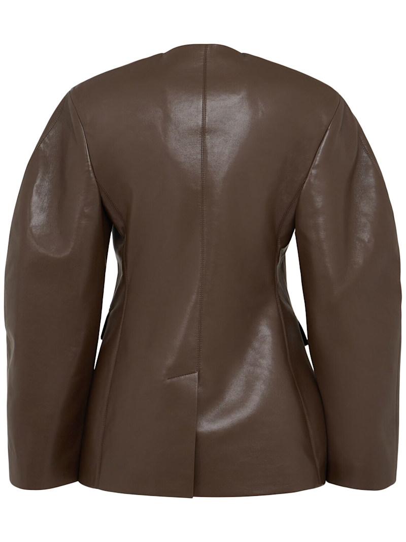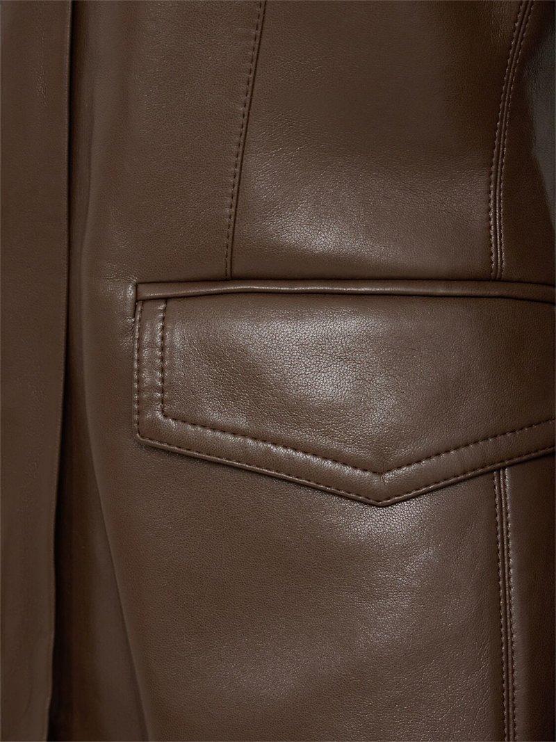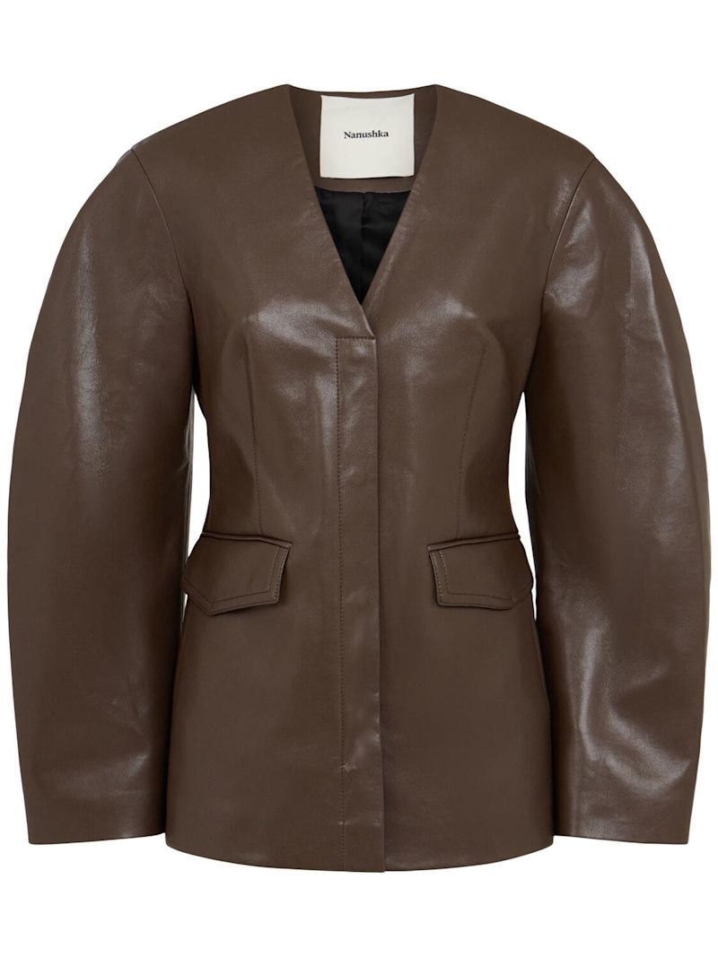 Erina插肩袖皮革夹克 - 巧克力色 - 女士 - Nanushka - 正面隐藏式纽扣开合.
