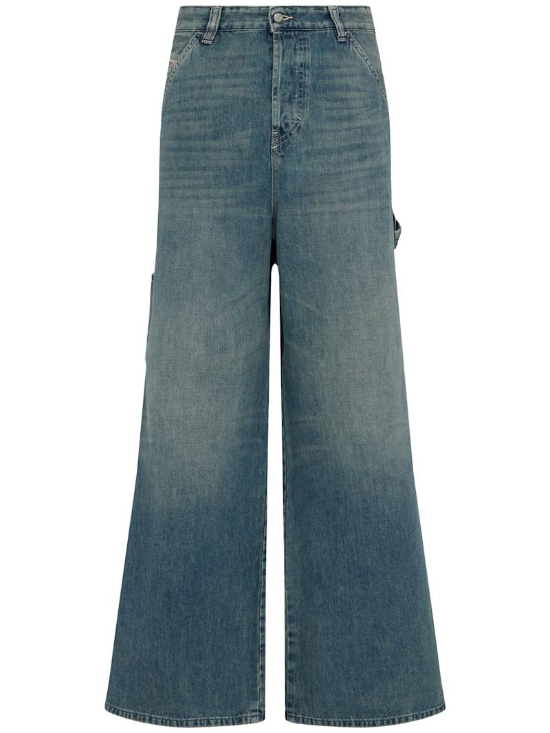 D-sire-w低腰阔腿牛仔裤 - 蓝色 - 女士 - Diesel - 正面纽扣和隐藏式拉链开合.