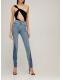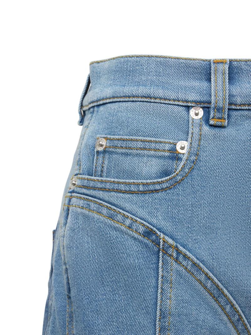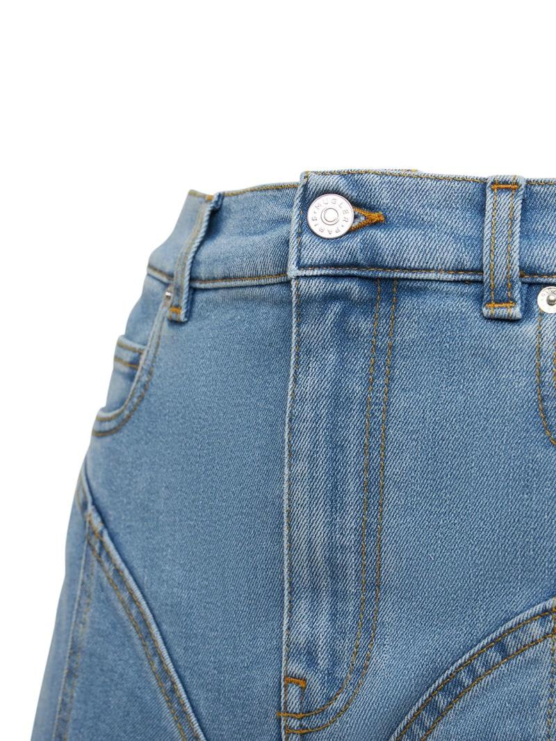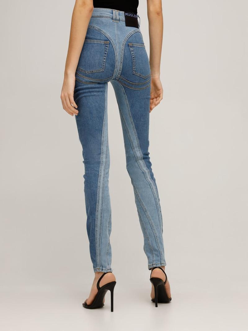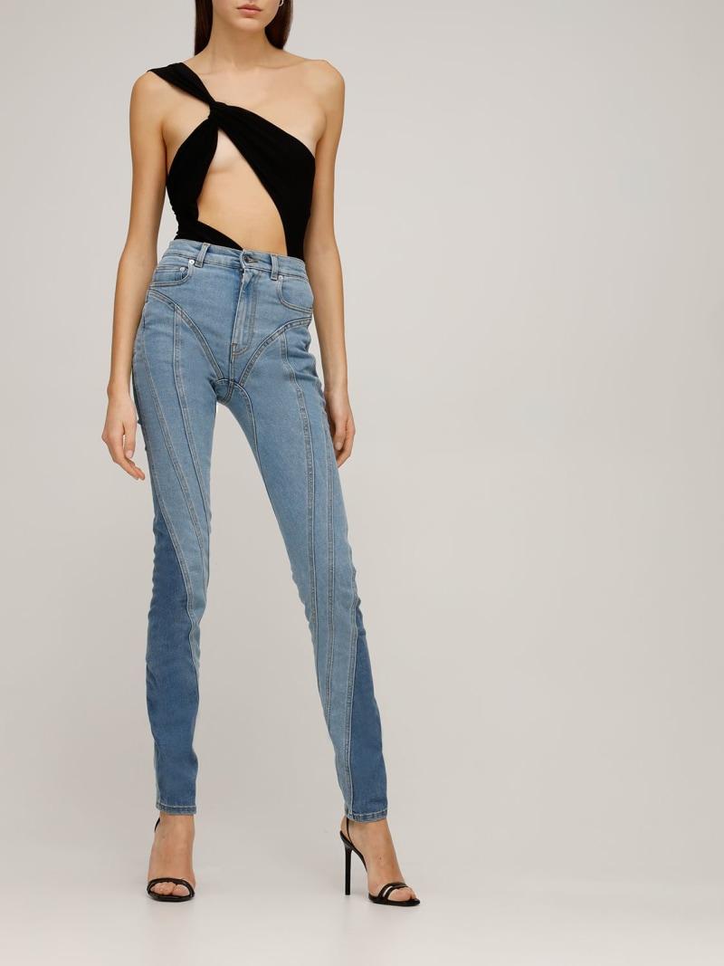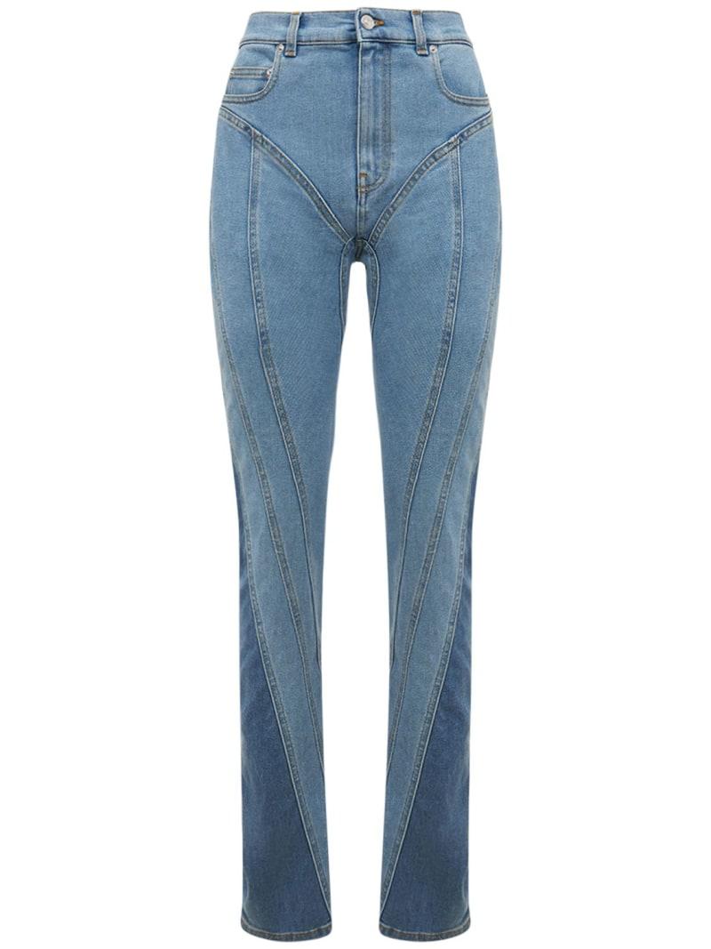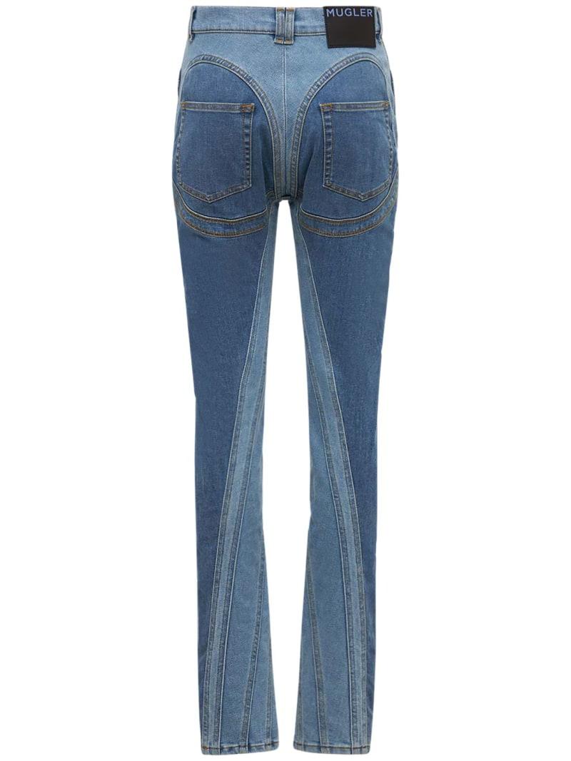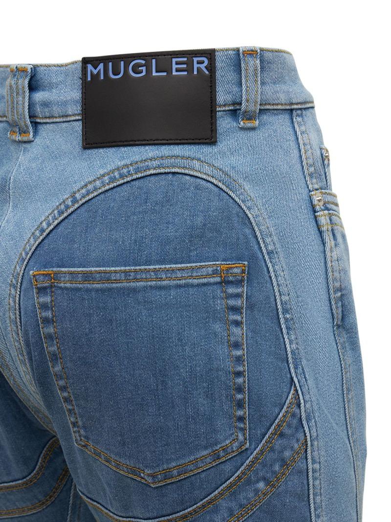 高腰弹力棉质牛仔裤 - 中蓝 - 女士 - MUGLER - 正面纽扣和隐藏式拉链开合.