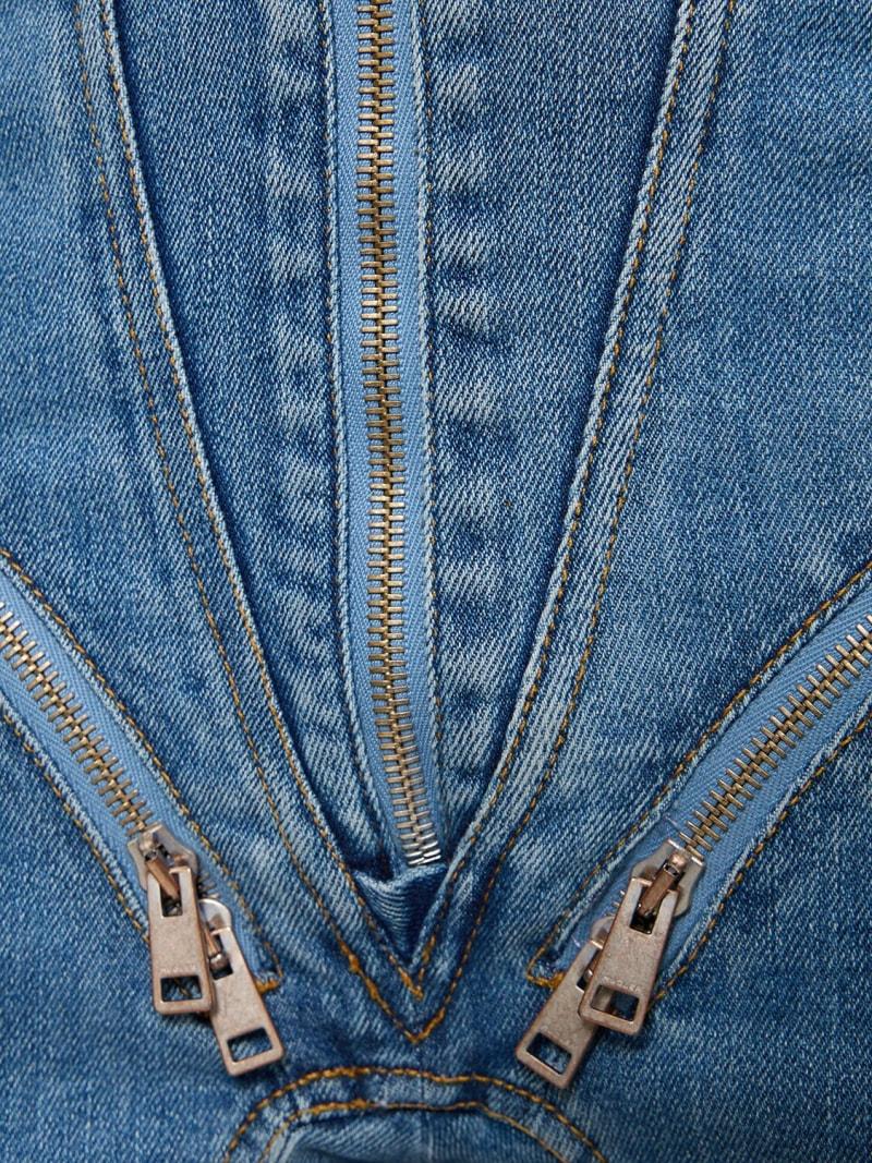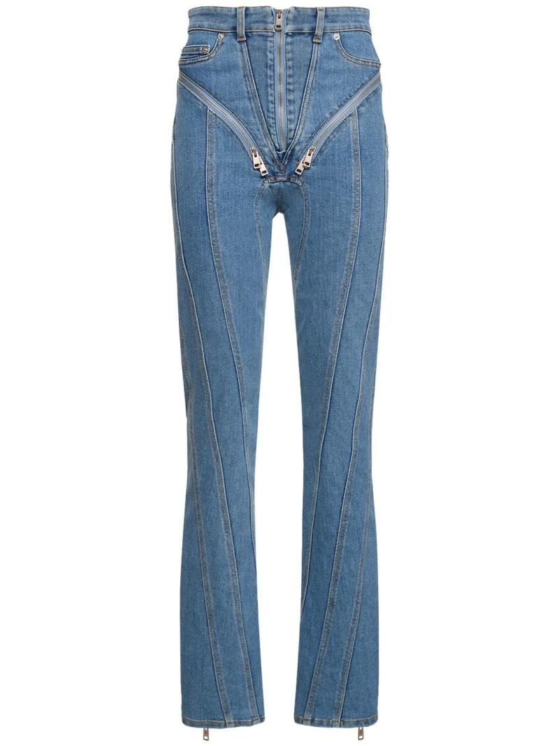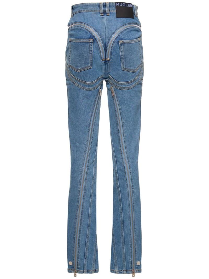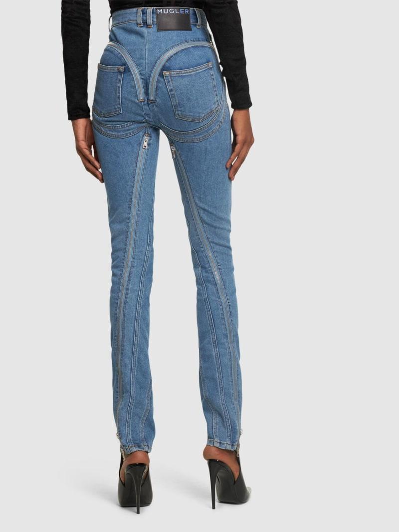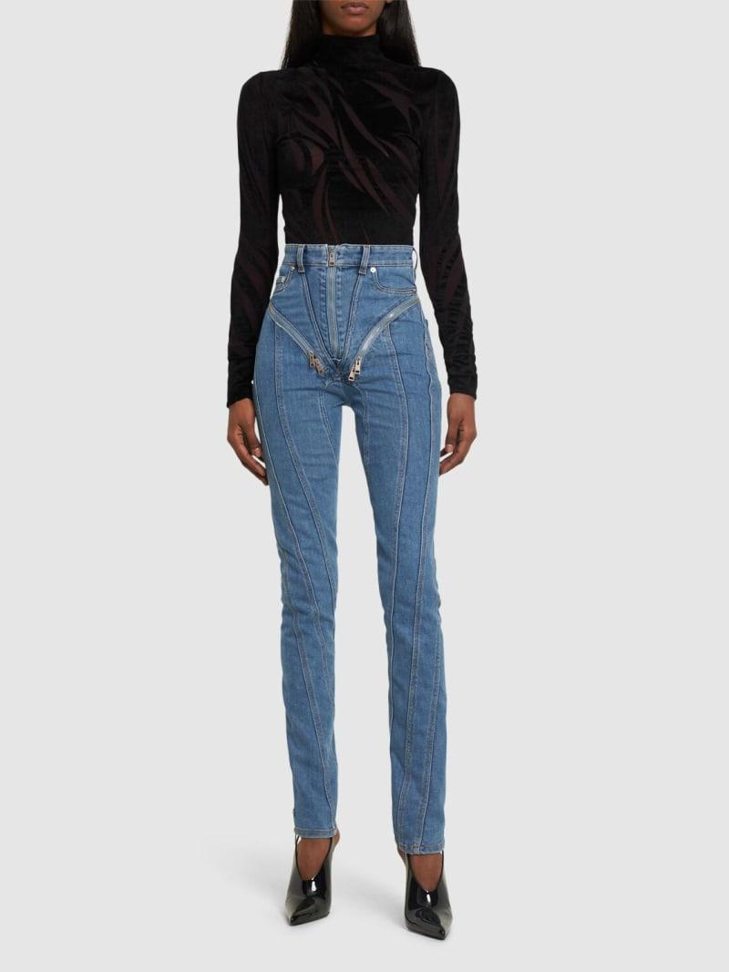 高腰拉链开合紧身弹力牛仔裤 - 蓝色 - 女士 - MUGLER - 正面拉链开合.