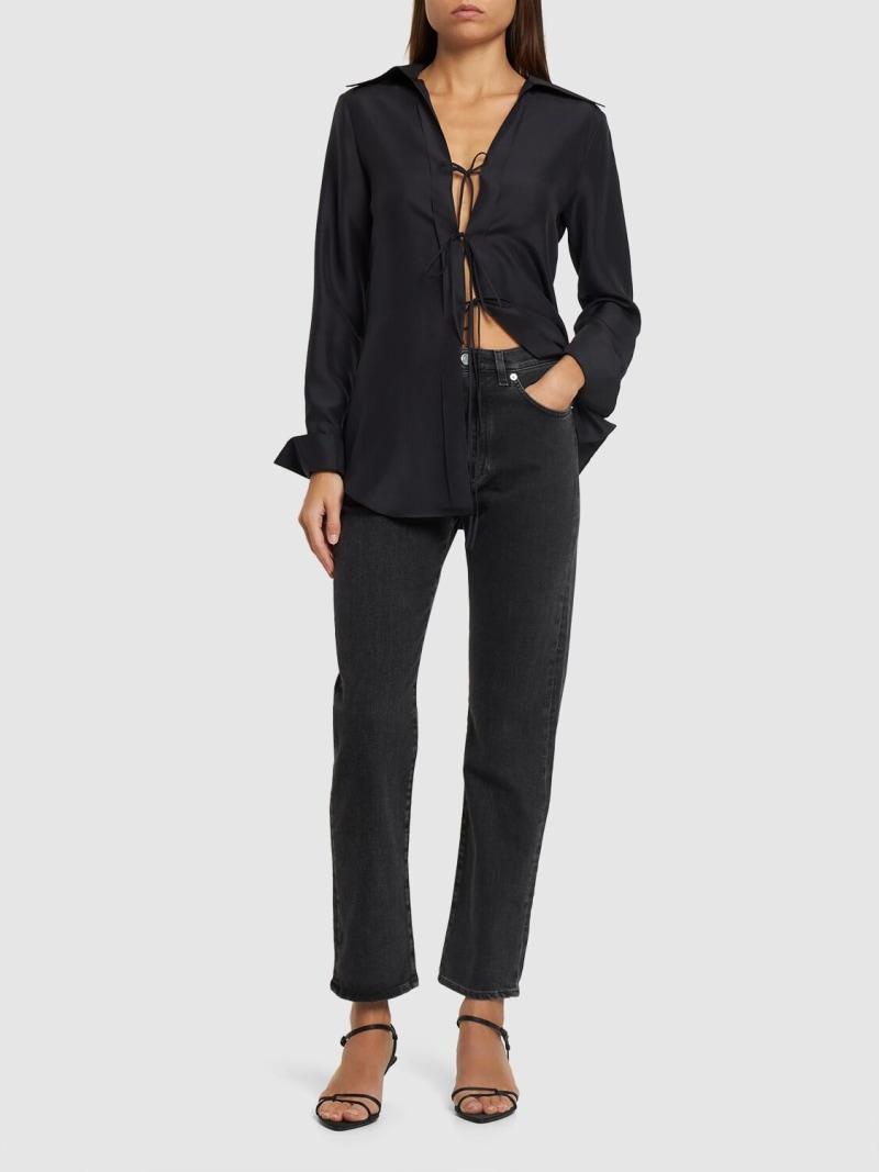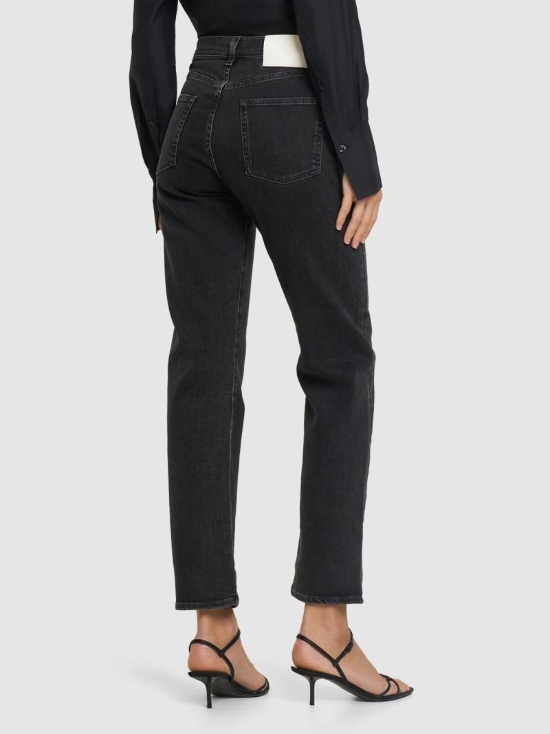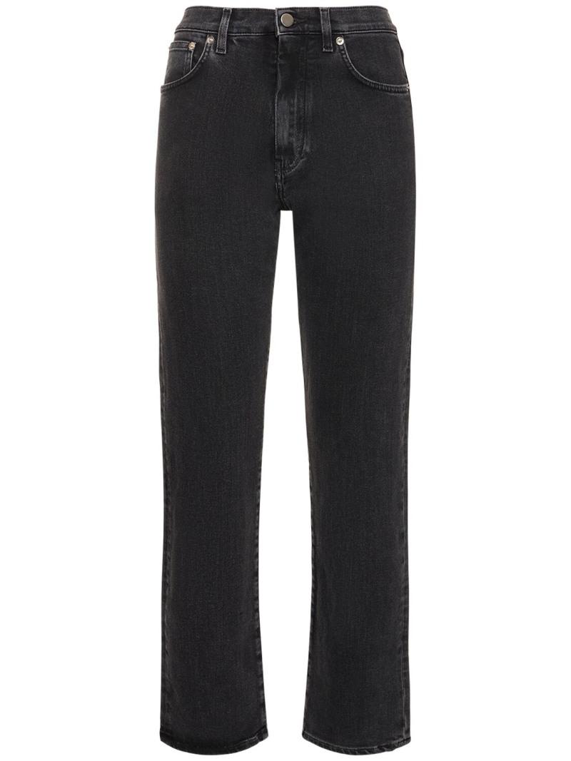 Wular有机棉直筒牛仔裤 - 黑色 - 女士 - Loulou De Saison - 正面纽扣和隐藏式拉链开合.