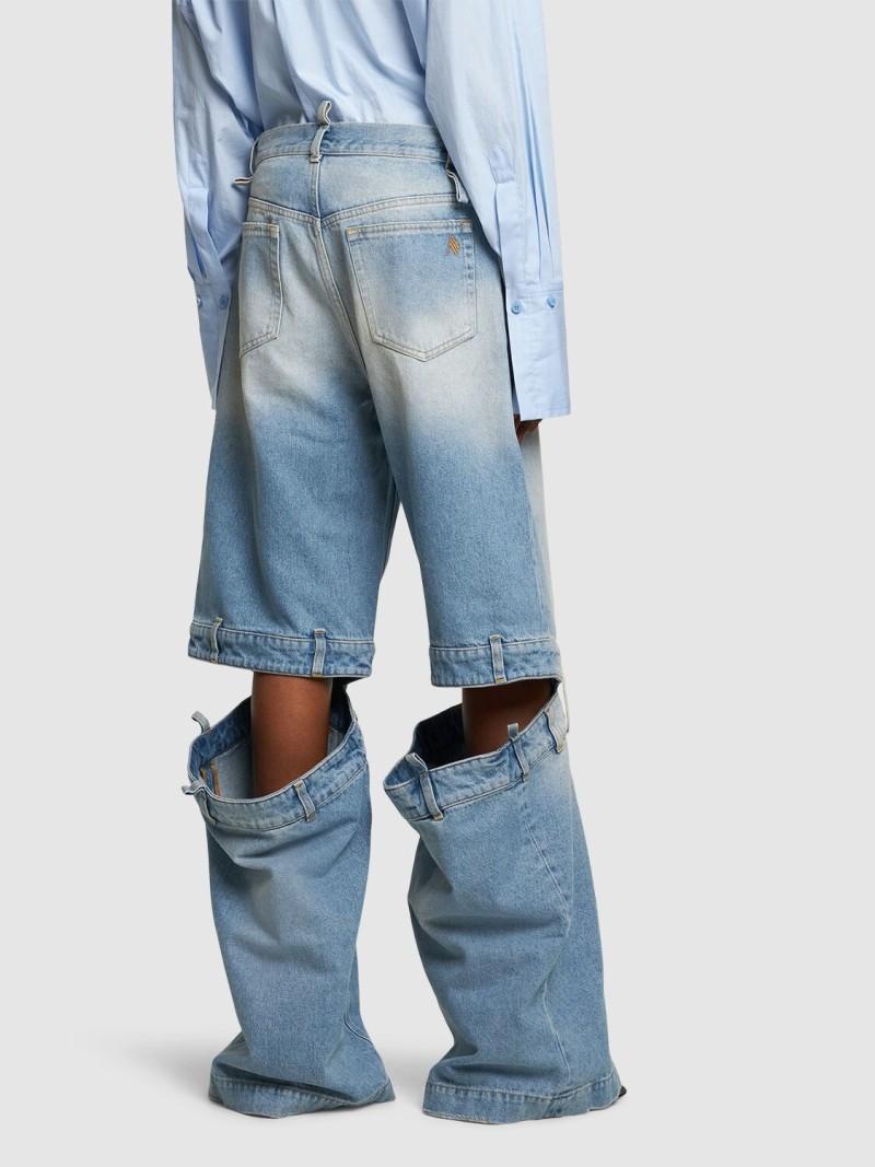 镂空牛仔裤 - 浅蓝色 - 女士 - The Attico - 正面纽扣和隐藏式拉链开合.