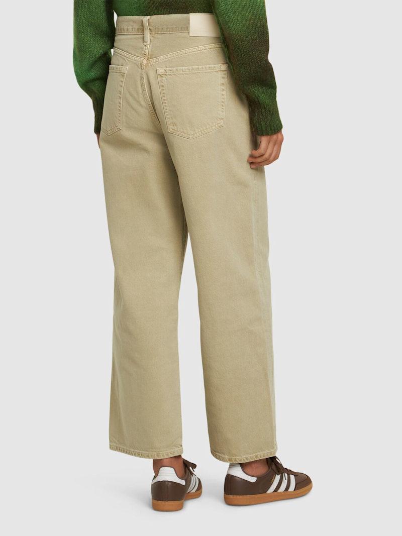 Pina低腰短款宽松牛仔裤 - 米黄色 - 女士 - 正面纽扣开合.