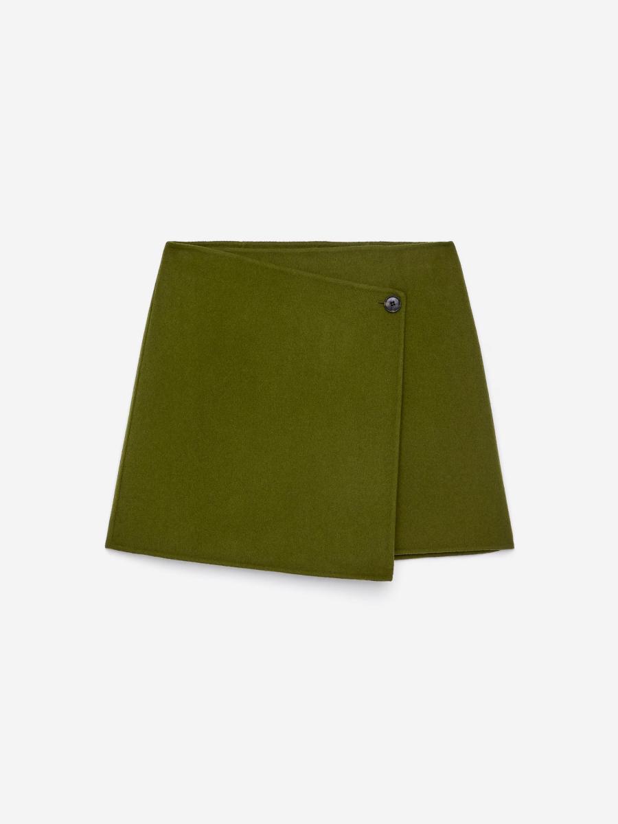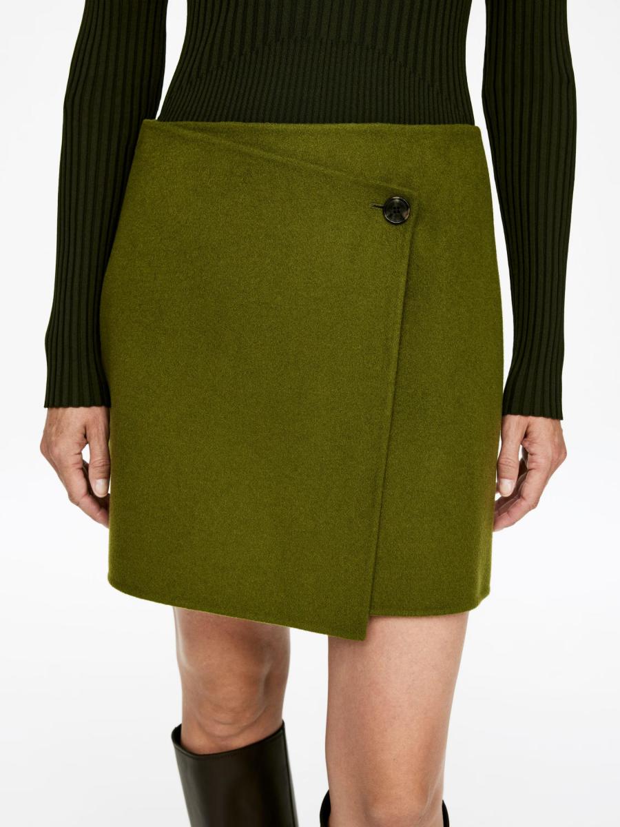 Mini skirt crafted from double-faced wool fabric, featuring a functional wrap front with button fastening. The style contains 61% RWS wool (TE-00047206). Products certified to the Responsible Wool Standard (RWS) contain wool fiber from farms independently certified to animal welfare and land management requirements.ARKET/Women's clothes/Women's skirts