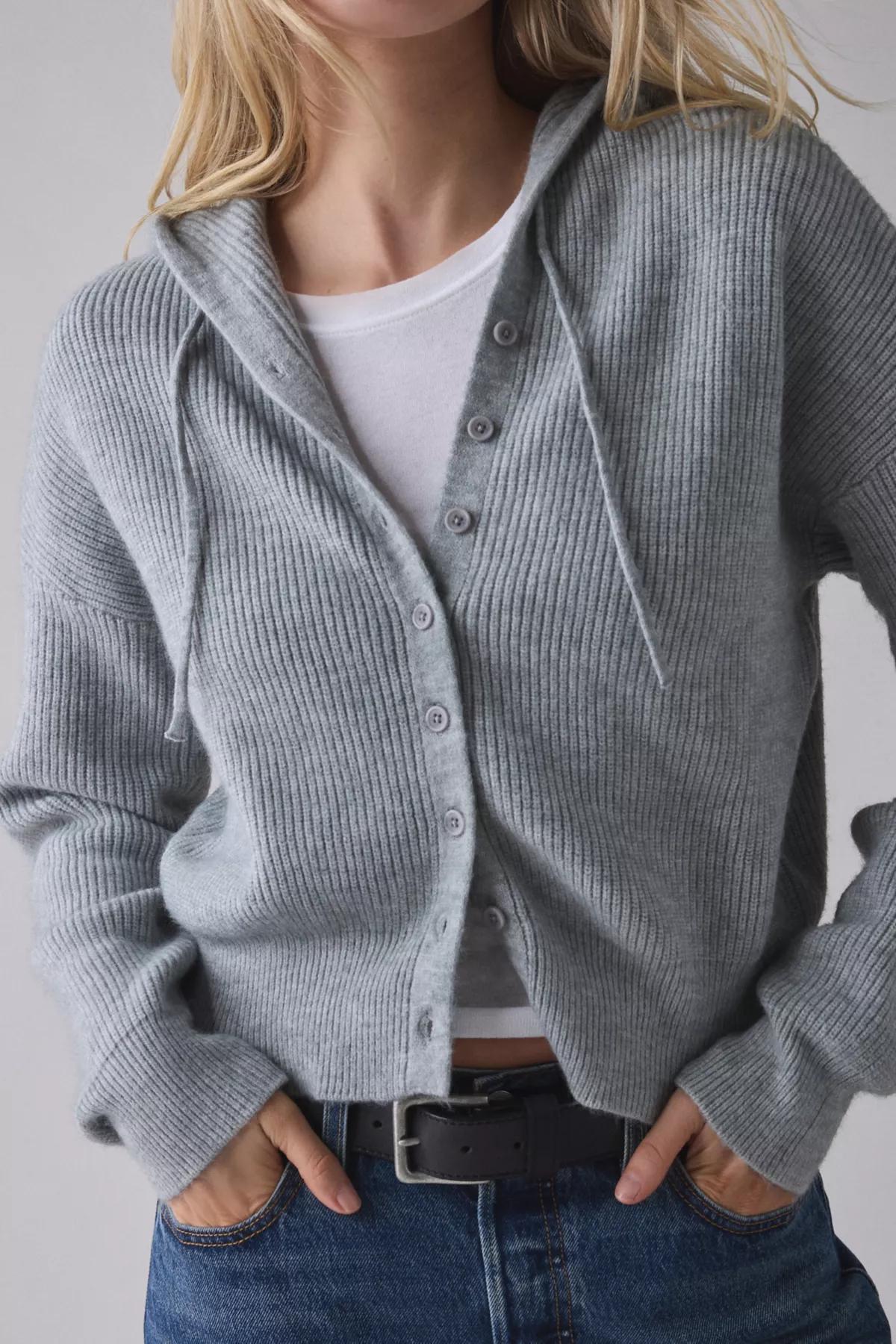 BDG Connie Ribbed Knit Hoodie Cardigan