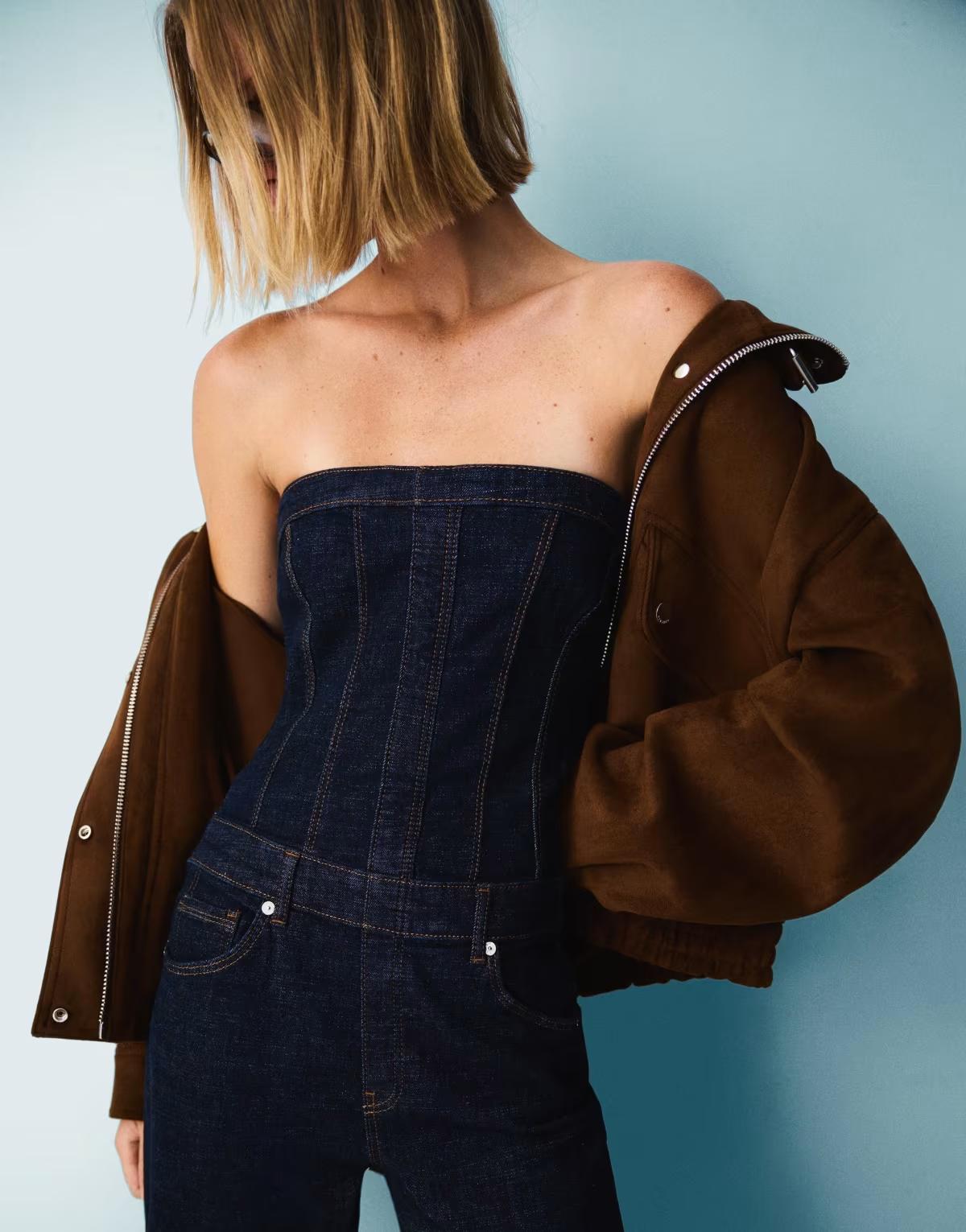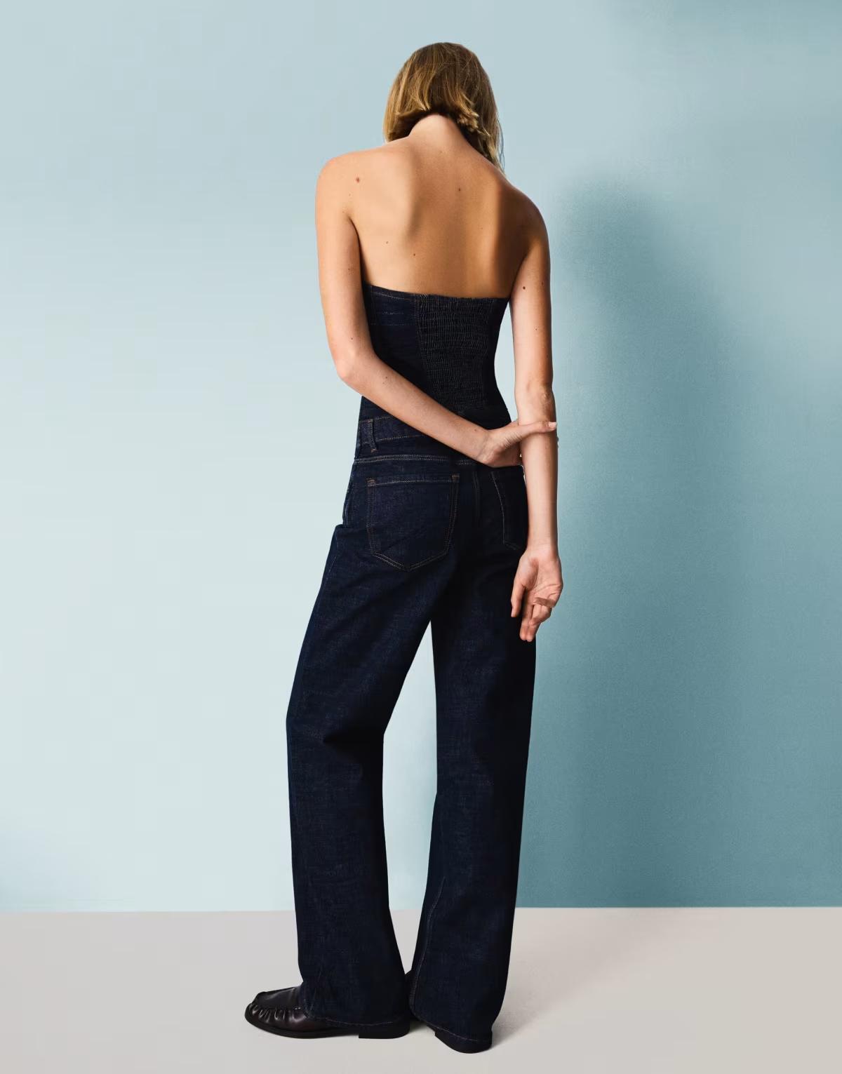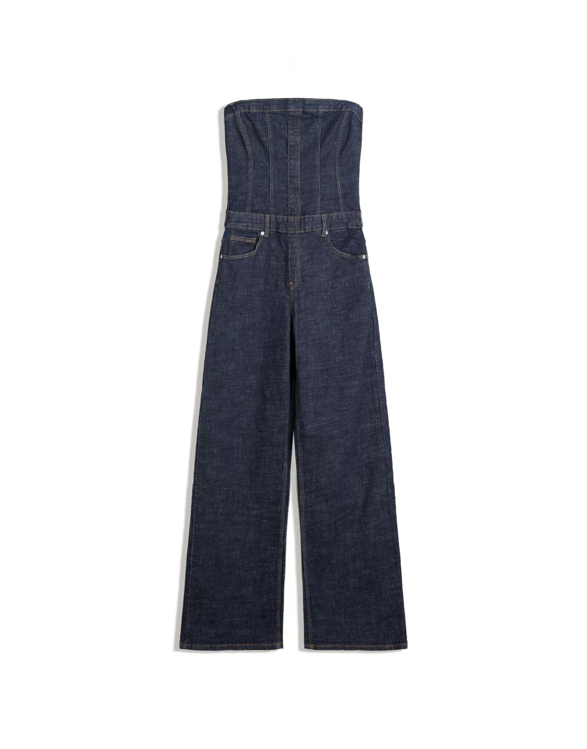 Bershka Denim bandeau jumpsuit in blue