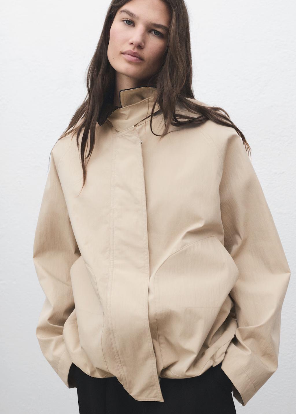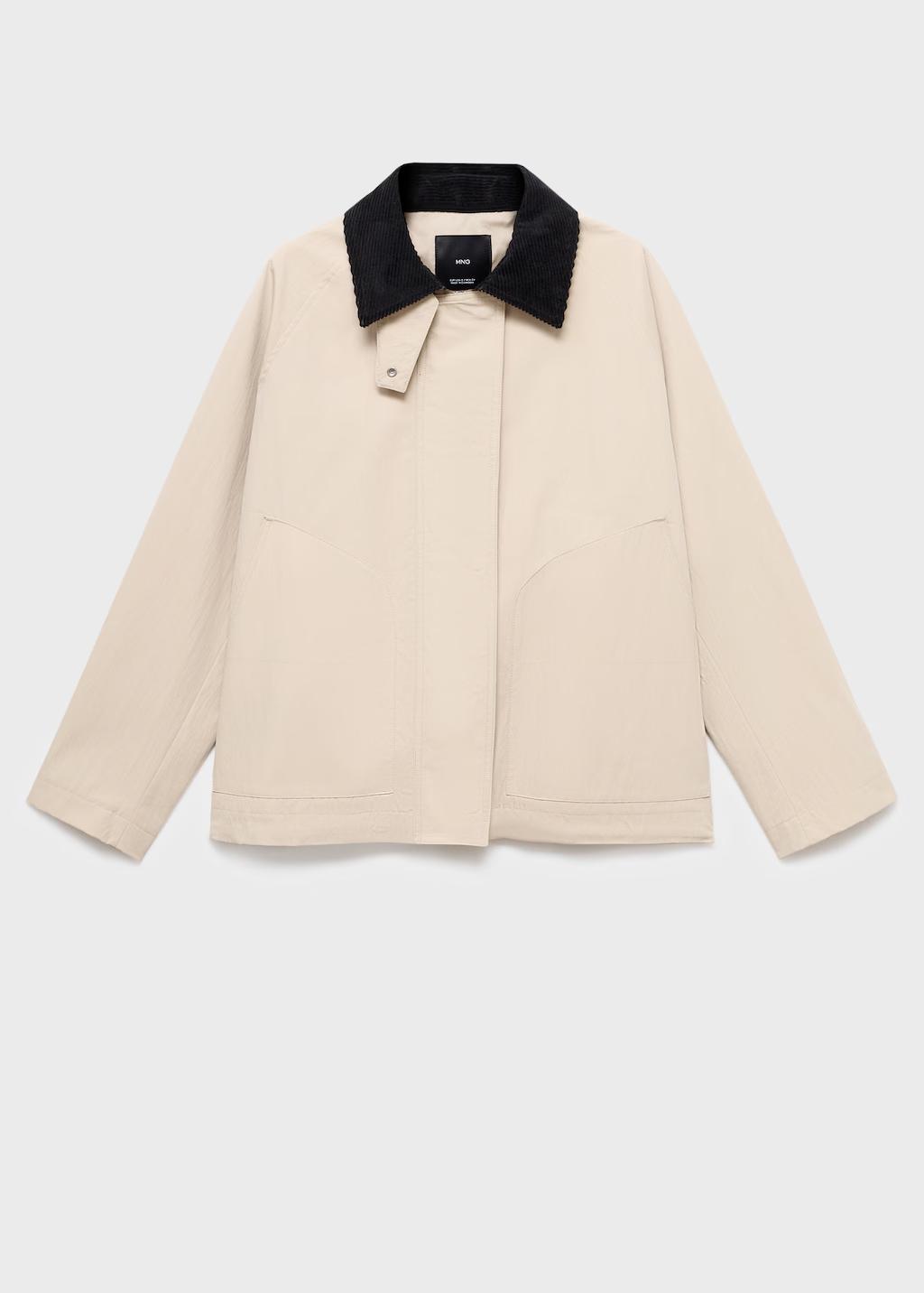 Tejido de algodón. Diseño oversize. Cuello camisero de pana. Manga larga. Bajo con cordón interior ajustable. Cierre oculto de cremallera y botones. Forro interior