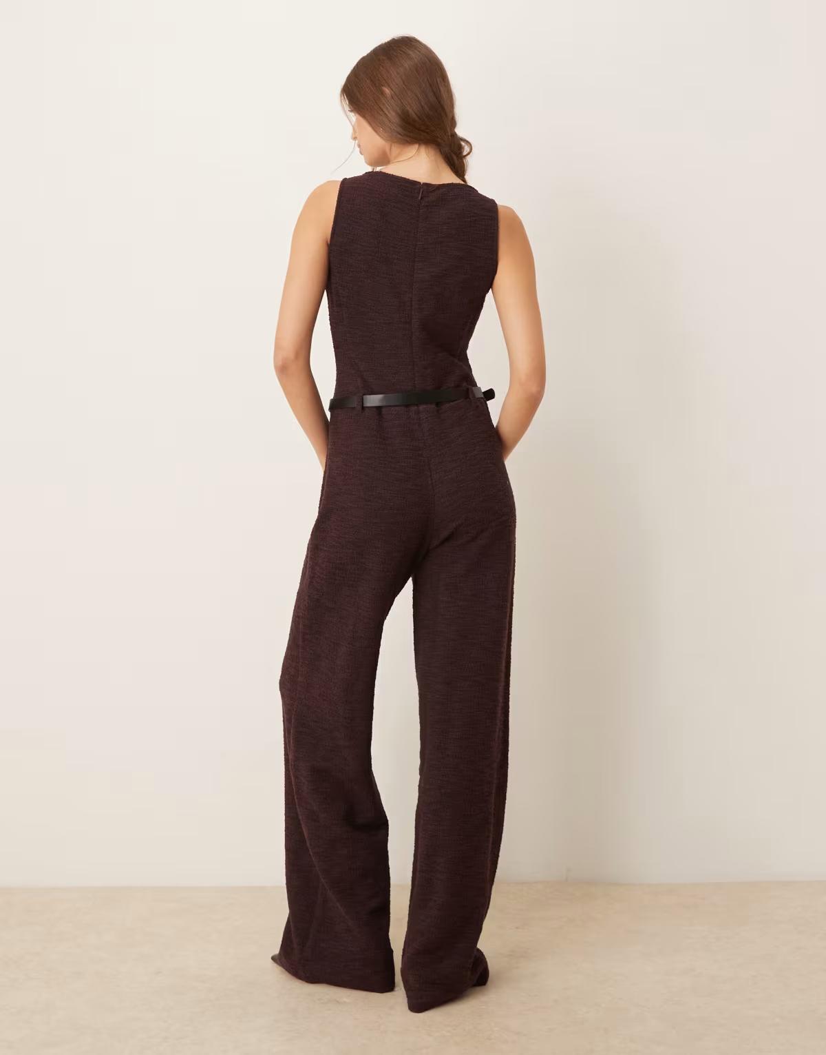 Mango cotton mix belted sleeveless jumpsuit in dark red