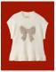 The product: Time to shine! The ultimate layer for little ones who love to sparkle, this knitted vest showcases a gold tinsel bow at the centre. Finished with ribbed hems and dropped shoulders for a super cosy feel.
