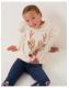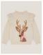 It's lovely weather for a sleigh ride together with you! Soft to the touch, this Christmas jumper features a gorgeous deer design with sparkly sequin embellishments and a sweet pink bow. Finished with ruffle detailing and ribbed trims. Cream