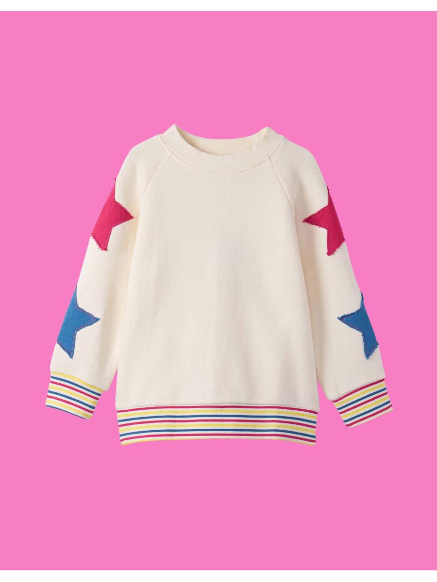 The product: Reach for the stars... A layer they won't make any fuss over putting on (because it's just so fun)! Decorated with red and blue stars down the sleeves with colourful stripes at the cuffs and hem, this sweatshirt adds a pop of colour to their outfit.