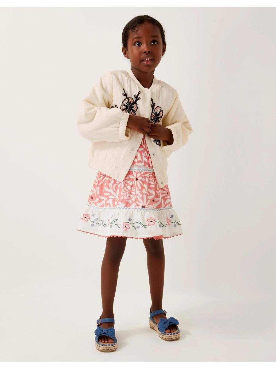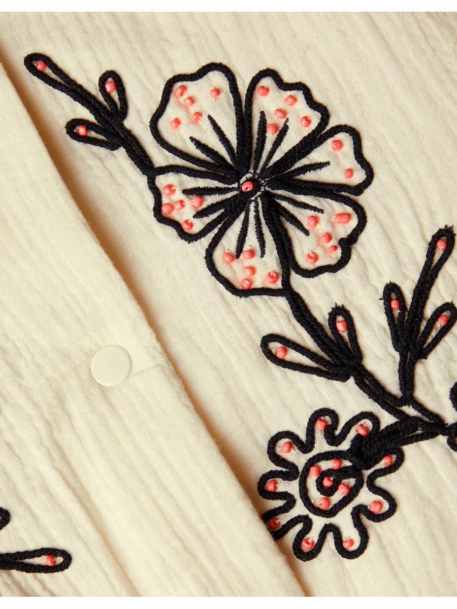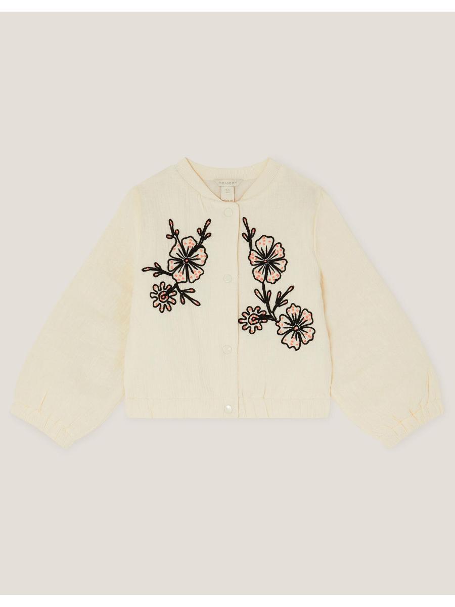 Freshly picked for spring! Made from soft crinkled cotton, this bomber jacket is decorated with cornelli embroidery in floral motifs. Finished with popper fastenings. Ivory