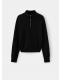 Confeccionado en tejido de punto medio, este diseño recto presenta cuello perkins con botones y manga larga