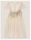 Enter party season. Perfect for special occasions, this gorgeous frock features a delicate tulle overlay with angel sleeves to finish. Complete with a large bow and sparkly sequins to the front. Looks fab with ballet flats! Gold
