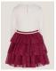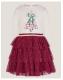 Sparkle season. Daywear they'll love showing off throughout the whole of December. Decorated with a bow-tiful sequin Christmas tree on the long sleeve bodice, this disco-ready dress features glitter-spotted tiers of tulle that make up the skirt. Finished with a frilly tulle neckline and button fastenings at the back for easy dressing. Red