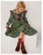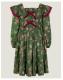 For the social butterflies! Designed with a shirred bodice and decorated with butterfly, bow and floral motifs throughout, this dress is perfect for special occasions. Velvet bows and ruffle sleeves add the perfect final touch. Green