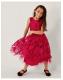 Sure to be best-dressed in this! Soaked in a ruby red colour, this dress is ready for swishing and twirling on the dancefloor. Designed with a sleeveless bodice and ribbon bow belt, it's decorated with floral embroidery over the delicate layer of tulle. Red