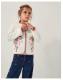 Hey, magical princess! The perfect finishing touch to all their party looks, this bomber jacket is bedazzled with sparkly unicorns over the quilted backdrop. Complete with pink trims and a front zip fastening. Ivory