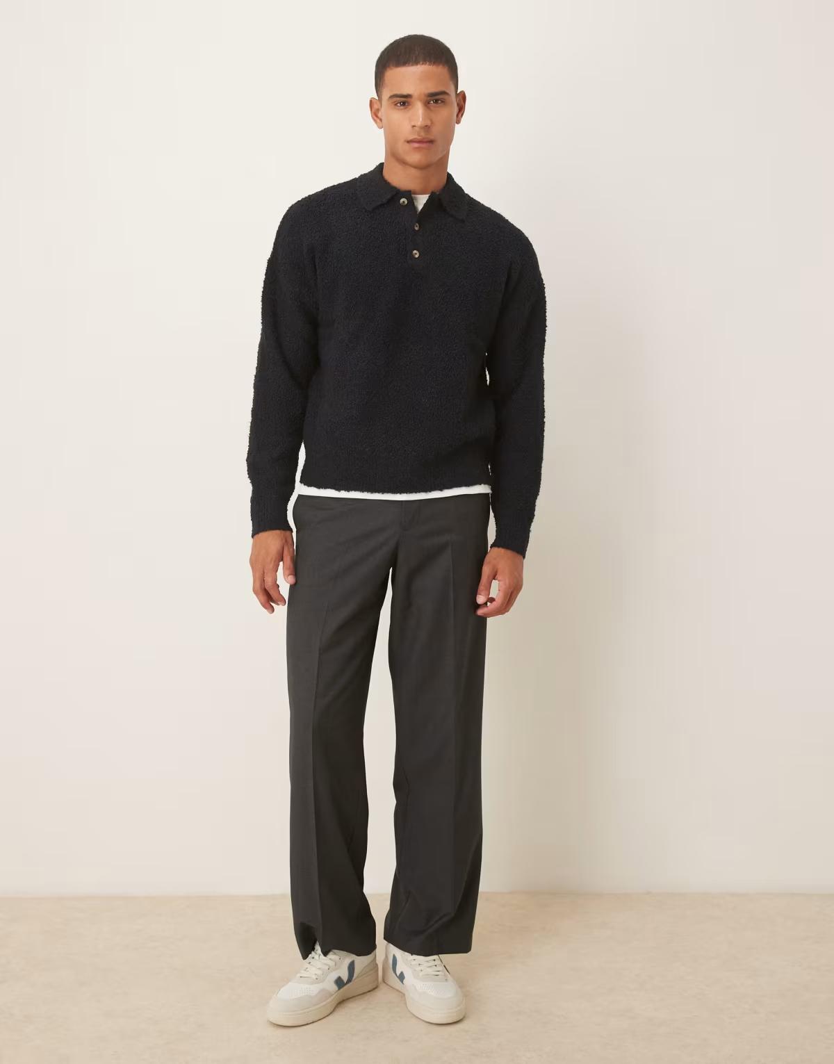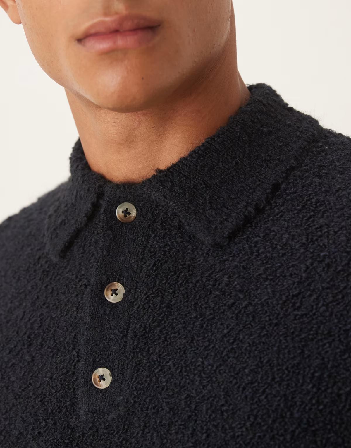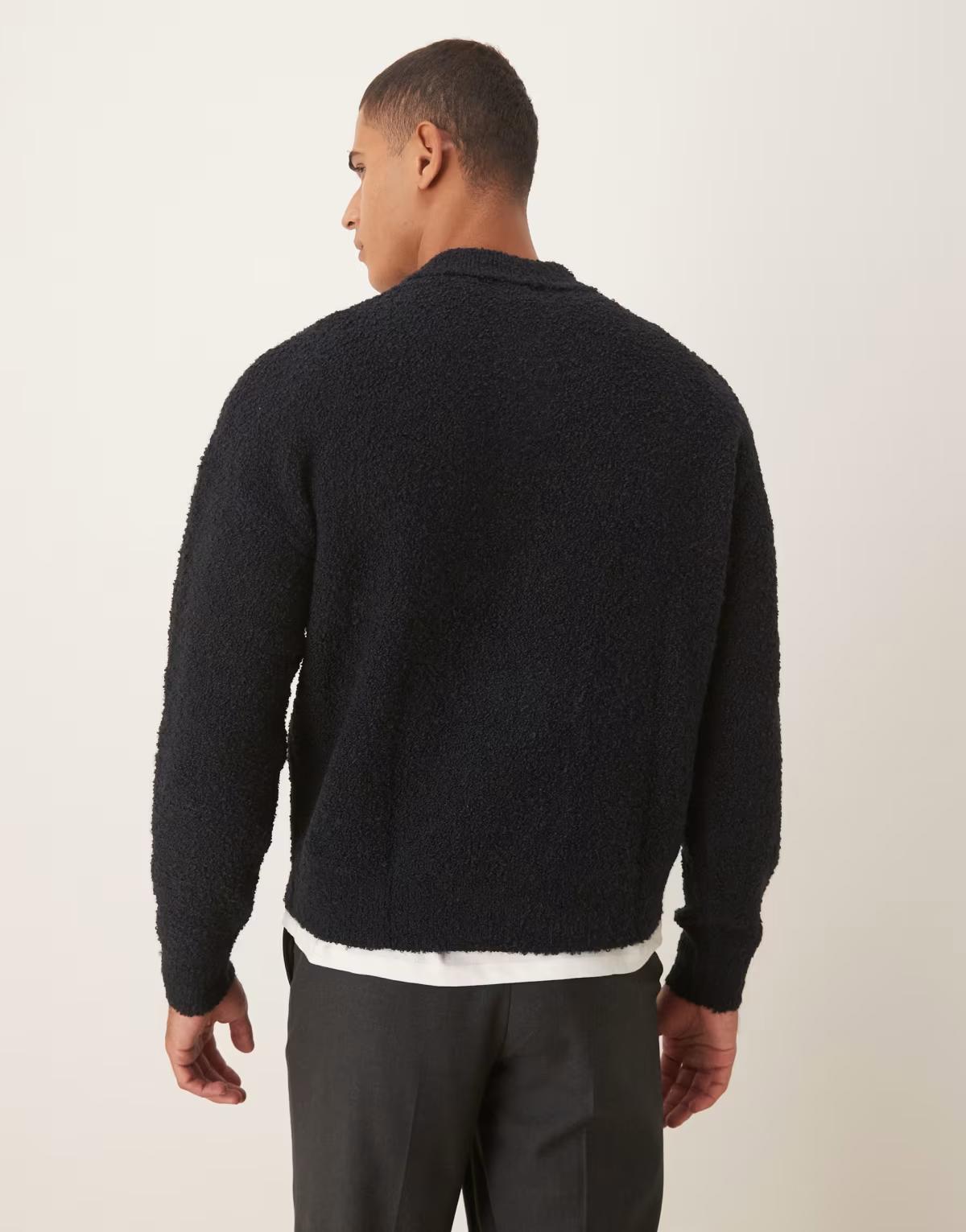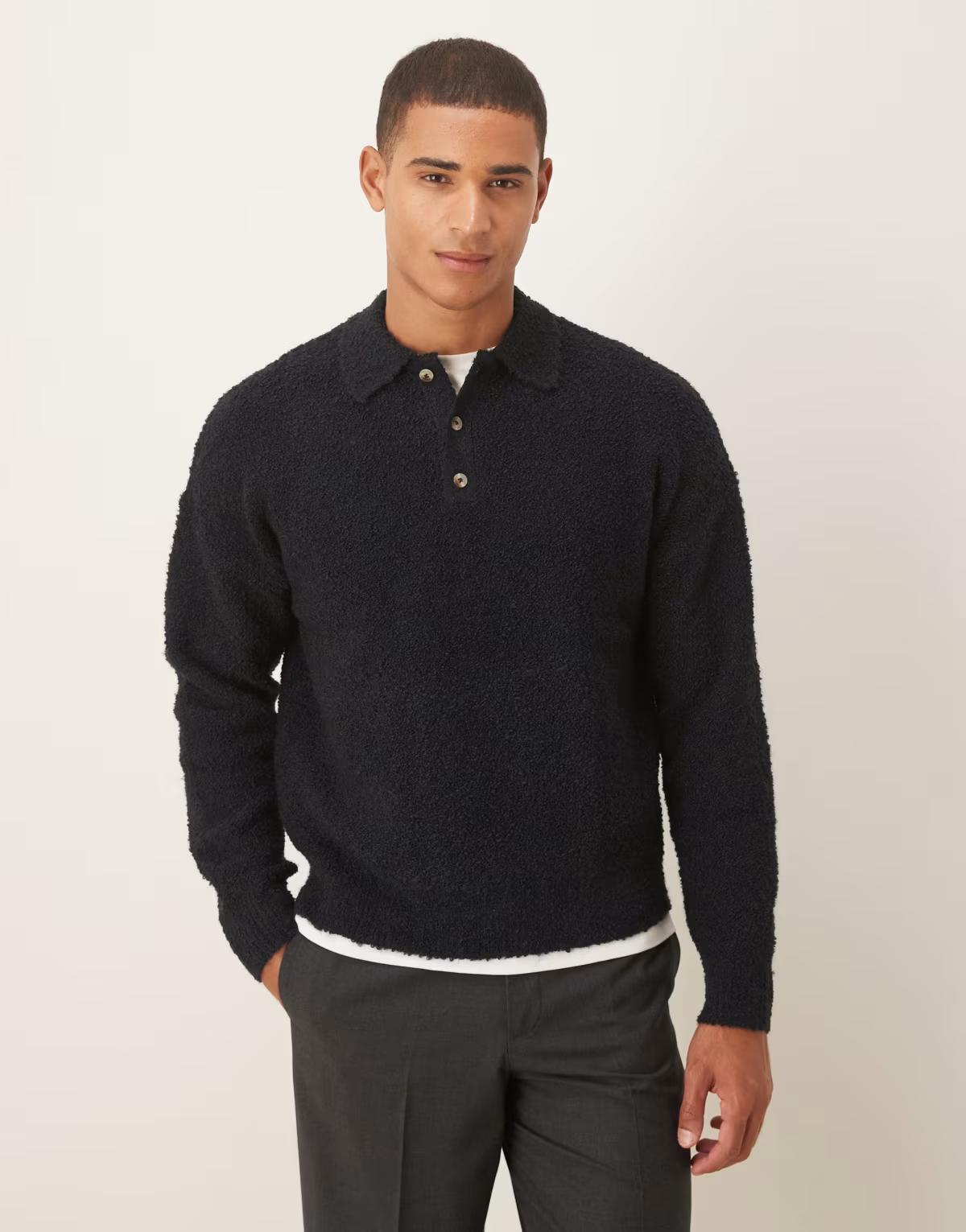 ASOS DESIGN relaxed knitted boucle polo in navy