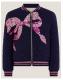 Sparkles: Daywear edition. Designed in a classic bomber style, this jacket showcases an XL pink sequin bow through the front, matching the stripes at the neckline, cuffs and hem. Finished with a zip fastening for easy dressing. Blue
