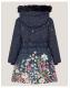 Beat the chill. Made with a super-soft and cosy padded finish, this coat is decorated with golden stars, colourful flowers and fluffy faux fur around the hood. Finished with a zip fastening and elastic waist belt for a cinched look. Blue