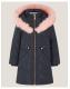 We're feeling warm and fuzzy inside. Designed in a quilted fabric and featuring a bright pink faux fur hood, this puffer jacket is guaranteed to keep them cosy on chilly days. Finished with a front zip fastening. Blue
