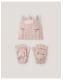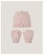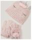 Wintertime magic. Stitched with baby pink yarns, this set includes a beanie hat and 2-in-1 fingerless mitten gloves, both showcasing mystical unicorn designs. Sold as a set. Multi