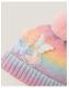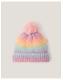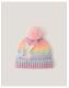 Serving looks, not chills. Brighten up the gloomy days of winter with this bobble beanie. Stitched with rainbow pastel yarns, it's decorated with fluttery butterflies and a pink faux fur pom-pom topper. Multi
