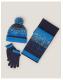 Chill out. Made from soft knits and featuring ribbed trims, this bright blue set includes a matching hat, scarf and gloves. Finished with a pixel print design. Blue