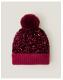 Stylish adventures await. Primed for chilly outings to the park, this beanie hat features sparkly sequin embellishments and a fluffy faux-fur pom on top. Matching mittens available. Red
