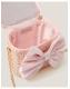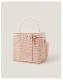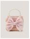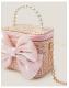For the mini Karl Lagerfeld fans. Designed in pink tweed, this bag features a zip top lid, pearl-beaded handle, XL satin bow and a gold-tone chain strap. Cute, right?