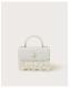 Dazzling! Decorated with delicate fabric petals and a fancy pearl brooch on the fold-over design, this mini handbag has a shimmery finish that adds endless sparkle to their looks. Complete with a sturdy top handle and optional chain strap they can wear across the body.