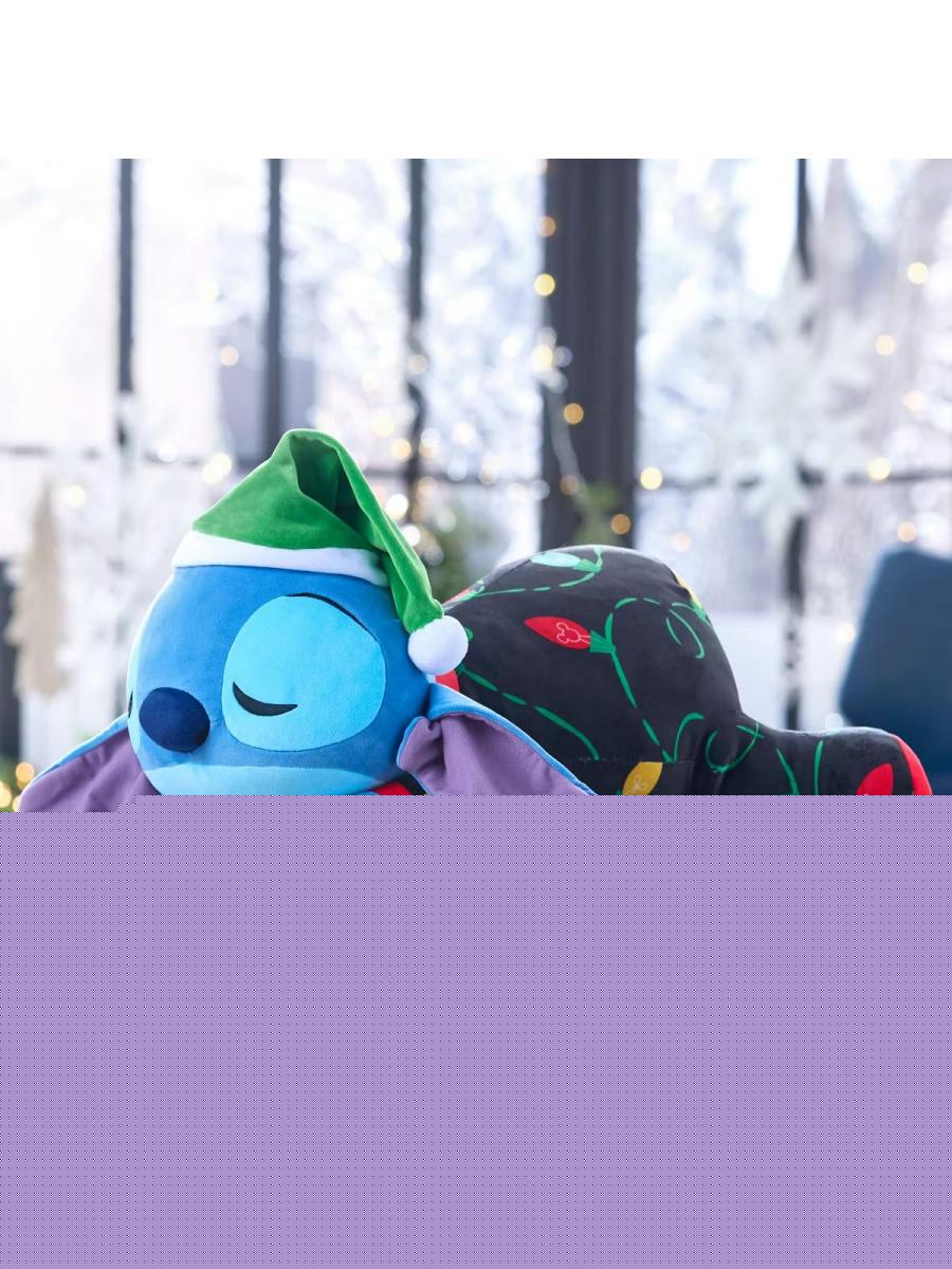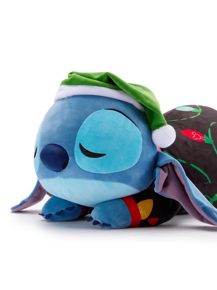 Looks like the excitement of the festive season has gotten to Stitch as he takes a nap as this Cuddleez soft toy. A string of colourful Christmas lights weave around the sleeping Stitch whose tuft of hair is covered by a green Santa hat. Your young one will love the embroidered details, spongey fill, and festive appearance of the uncommonly restful Stitch.